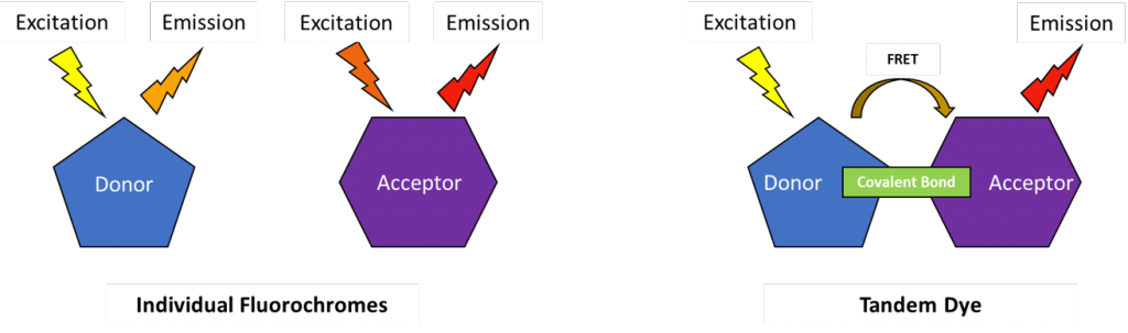 The commercial availability of antibody-linked fluorescent dyes has expanded rapidly over the past decade. Where researchers were once limited to a handful of common dyes (FITC, PE, APC, PerCP, etc.), they can now choose from an extensive list of fluorescent dye lines – spanning the light spectrum from IR to UV. Additionally, researchers can now use several tandem dyes to improve the fluorescent signal for their experiments. However, while tandem dyes can serve as powerful research tools, they can also introduce a new set of problems to consider. Here we explore the benefits of tandem dyes and review some of the difficulties that they present. Sections: